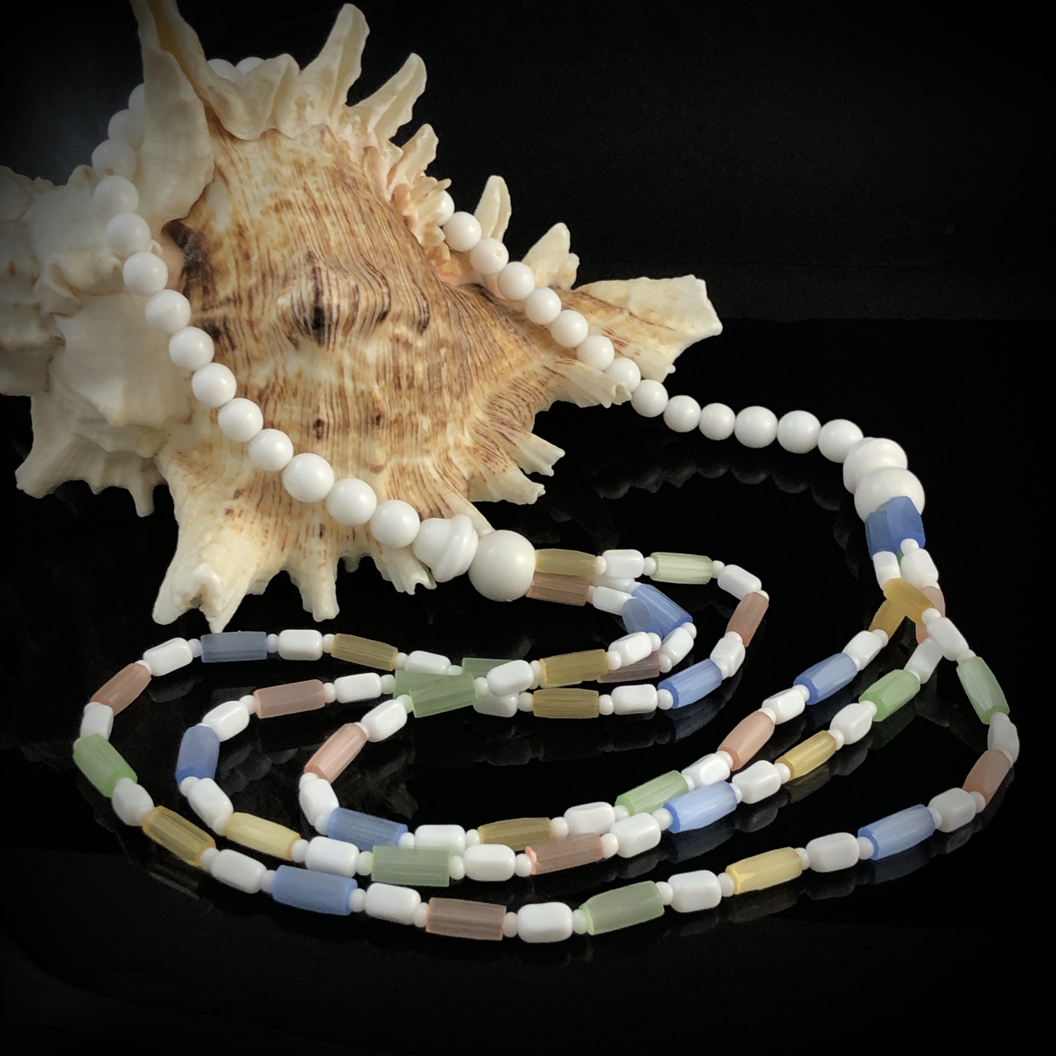 Винтажное трехрядное чешское колье из сатинового стекла, Чехословакия 1970-е гг.